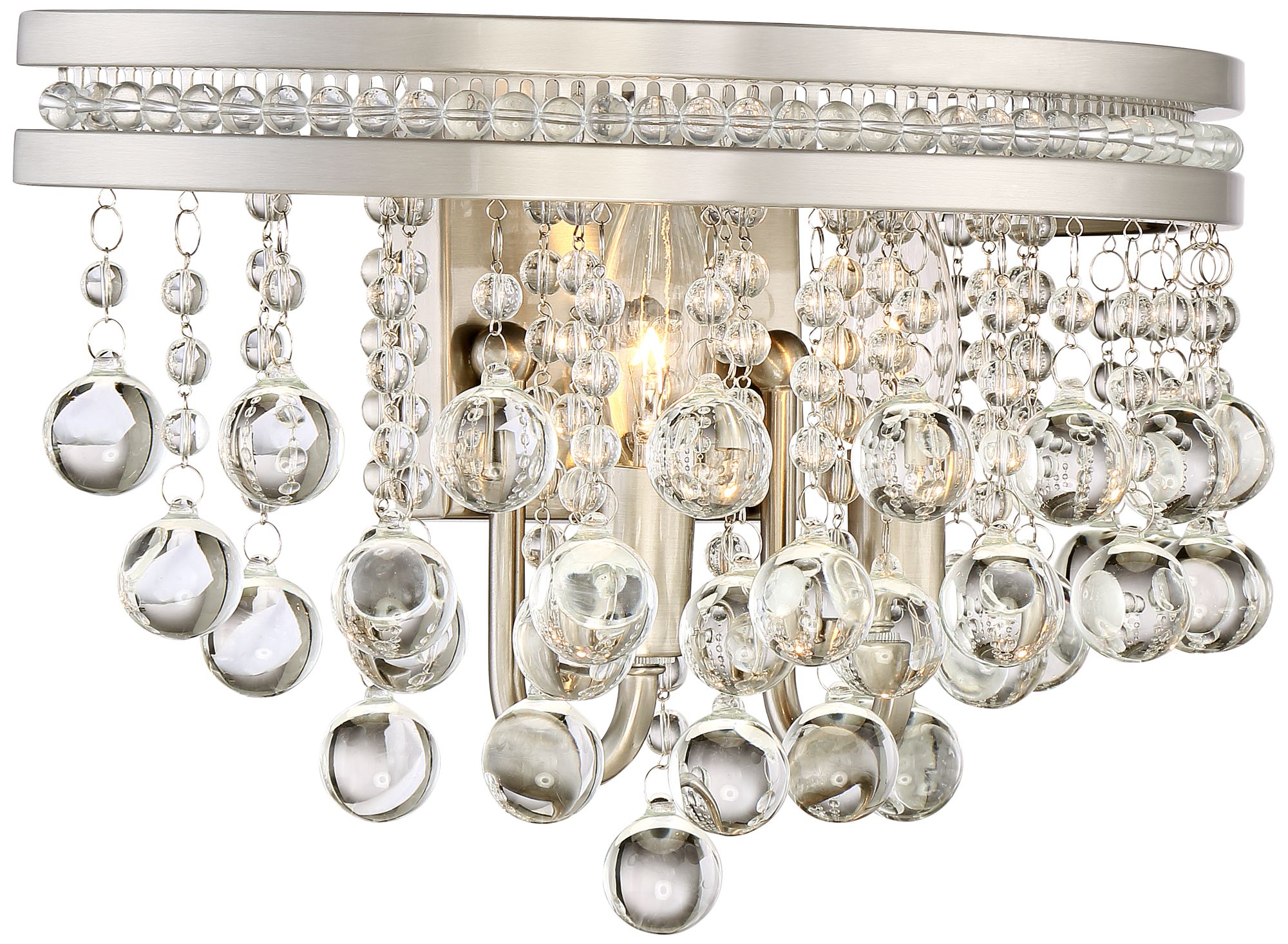 Nickel and Crystal Bathroom Sconce - Traditional ... from st.houzz.com 3,482 brushed nickel wall light products are offered for sale by suppliers on alibaba.com, of which led wall lamps accounts for 7%, outdoor wall lamps accounts for 1%, and crystal lights accounts for 1%. Shop wayfair for all the best 5 light brushed nickel bathroom vanity lighting. Enjoy free shipping on most stuff, even big stuff. Ripon bathroom wall light brushed gold. Albany 4 light brushed nickel pendant light fixture. Choose bathroom lighting to suit your unique space. Home hardware's got you covered. Brushed nickel with swirled marble.